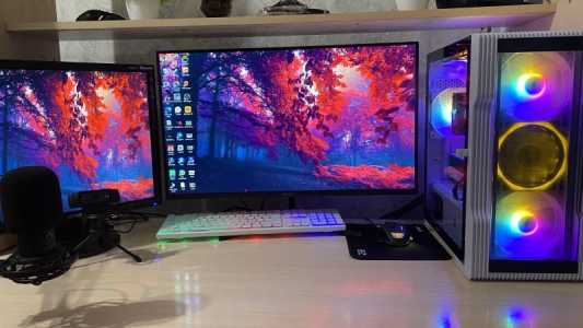 Продается игровой ПК Комплект включает в себя системный блок, мониторы, клавиатуру, мышь и микрофон с веб-камерой .