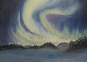 Продам картину "Северное сияние".. Масло (холст на подрамнике). Размер 30*35 см.