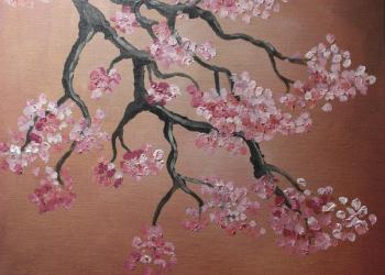 Продам картину "Веточка сакуры". Масло (холст грунтованный на картоне). Размер 30*30 (см).