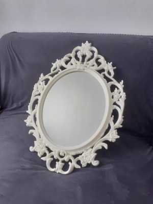 Настенное овальное зеркало в белой раме. Состояние как новое, без царапин и сколов. Материал рамы - пластик.